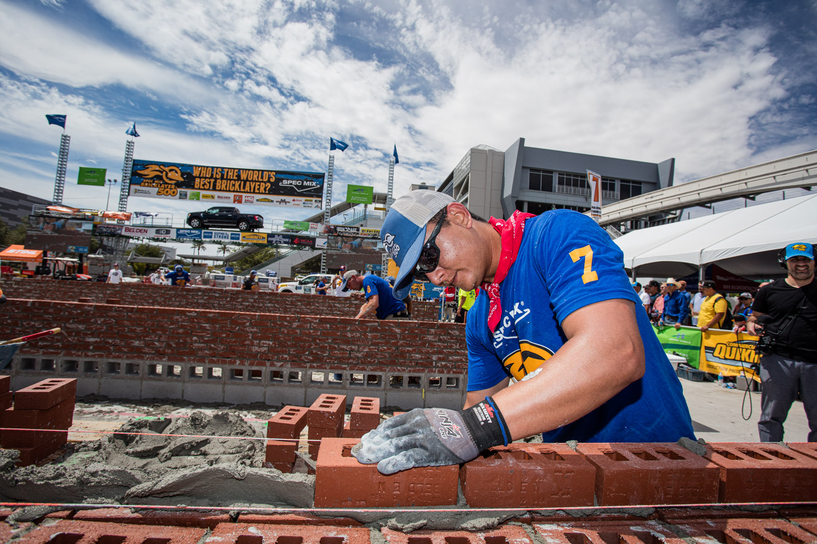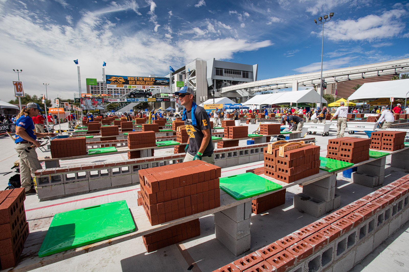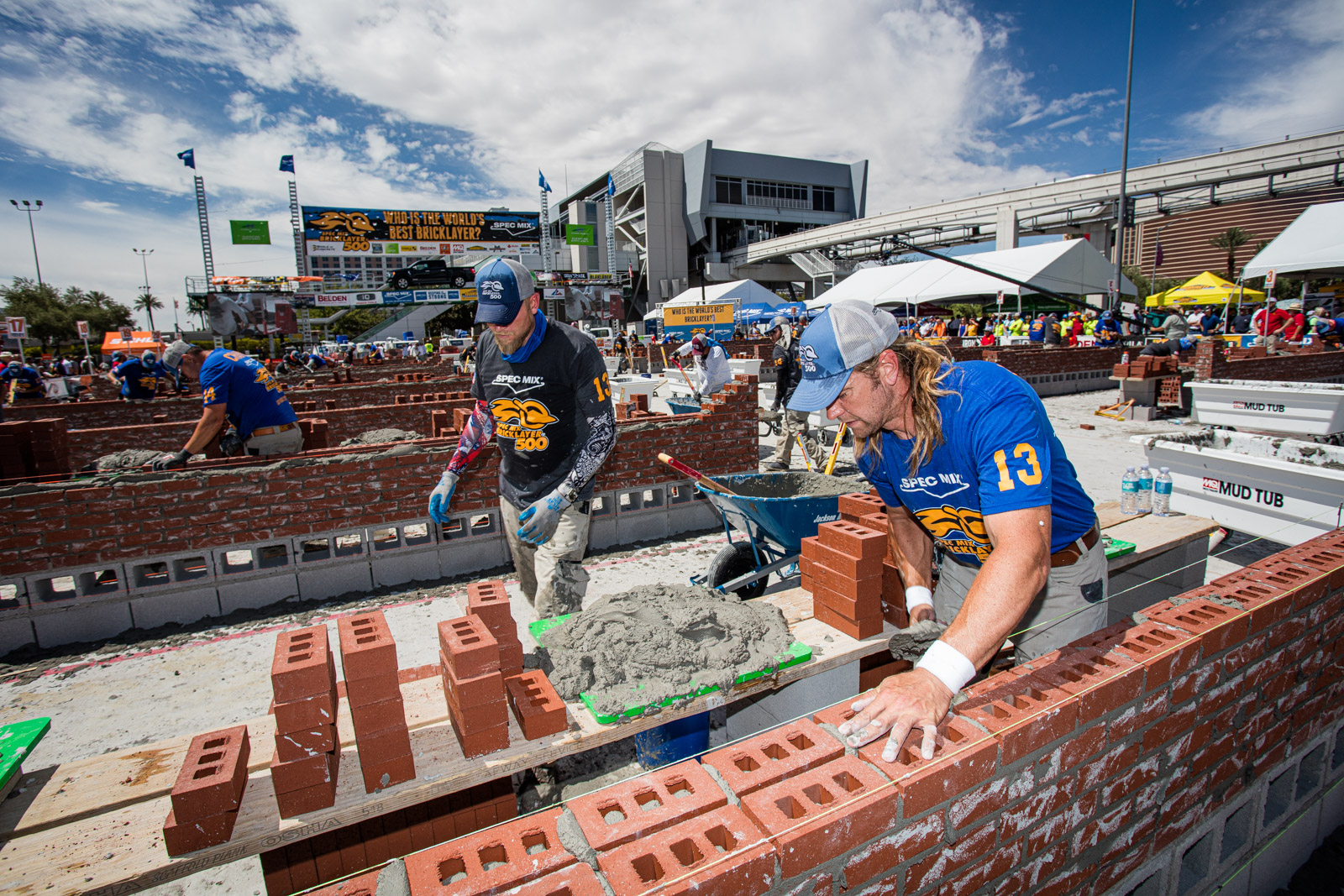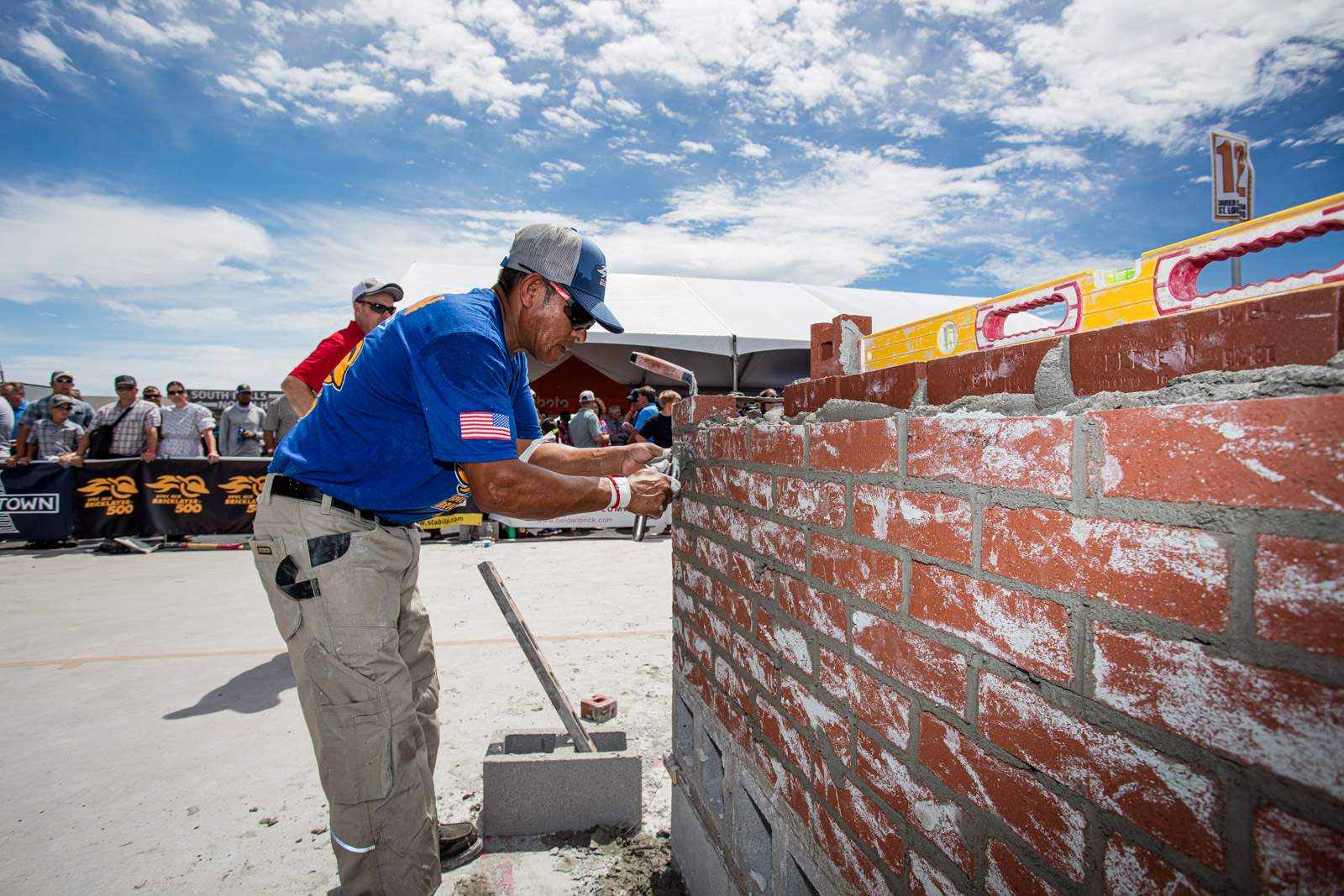 With over $125,000 in cash and prizes to be earned, masons from across North America were invited to Las Vegas to compete in the SPEC MIX BRICKLAYER 500 after winning a regional series qualifying event. 16 regional series competitions were held in 2020, shy of the typical 24, due to local restrictions during the Covid-19 pandemic. Along with two returning automatic qualifiers (World Champion and SPEC MIX TOP CRAFTSMAN) and four Wild Card qualifiers, 20 total masons lined the arena in Las Vegas for one of the most exciting and anticipated events in the world of masonry. Before the competition, two mason and tender teams were forced to withdrawal.